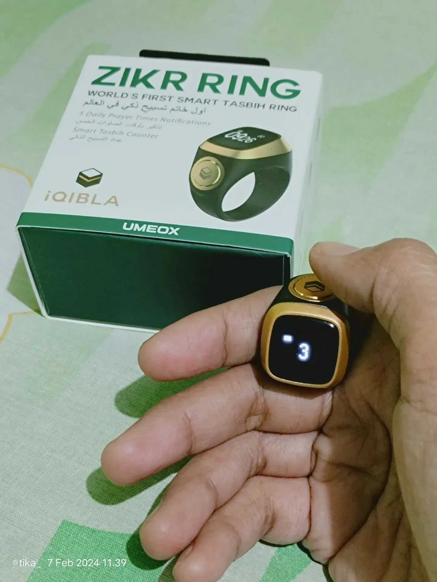 Support for 3 Days Normal Use. Qibla Ring comes with a very classic portable charging case in which the ring can be placed when not in use and charged by connecting it to an adapter or computer via the USB port.