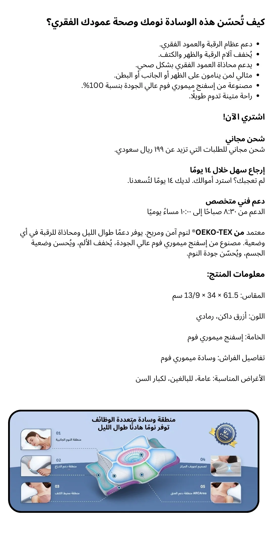 منطقة وسادة متعددة الوظائف توفر نومًا هادئًا طوال الليل - وسادة دعم الظهر